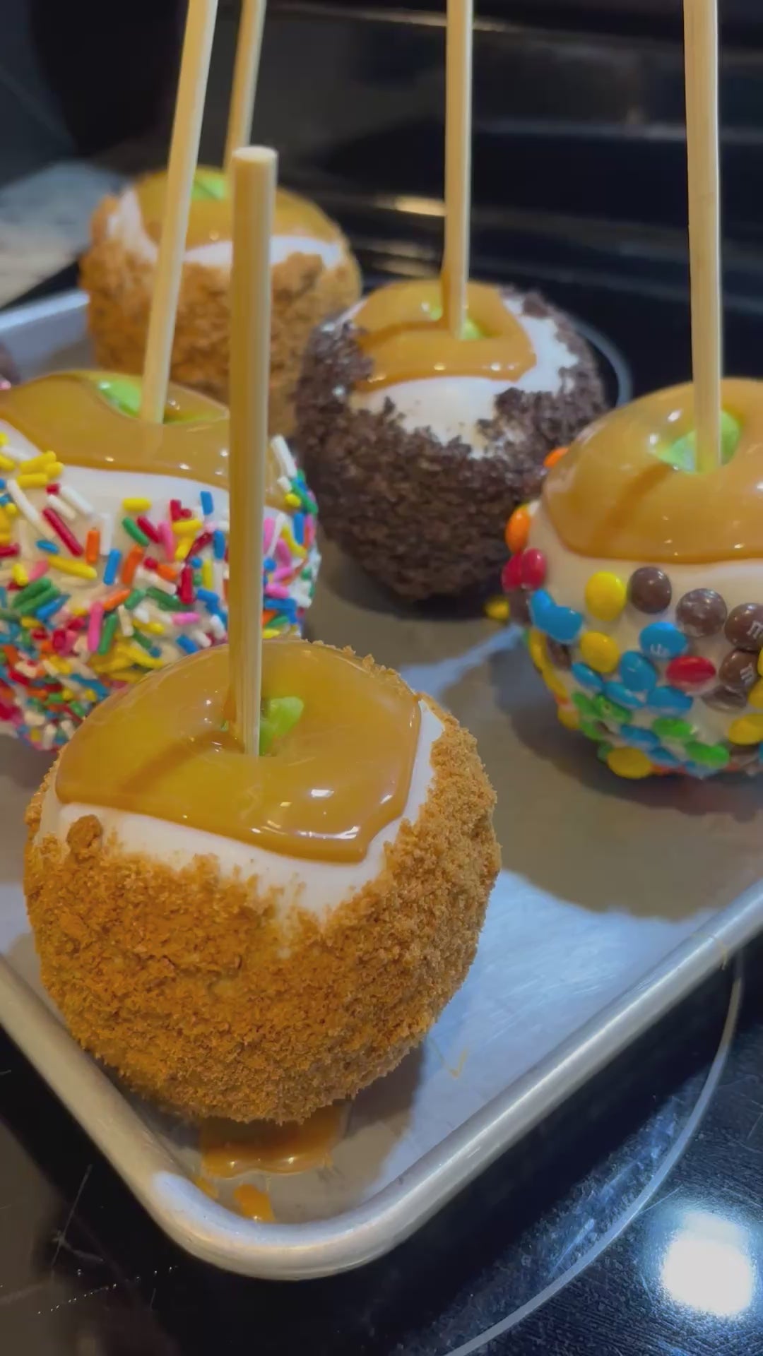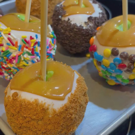 Indulge in our signature Caramel White Chocolate Apples—crisp fruit dipped in velvety caramel, enrobed in smooth white chocolate, and finished with your choice of toppings: crushed Oreos, Biscoff cookie crumbles, colorful sprinkles, M&Ms, or strawberry crunch. Each apple delivers a perfect balance of sweet and tart, making them an ideal autumn treat. Sold individually, these handcrafted confections are perfect for gifting, entertaining, or savoring as a sophisticated dessert. Order today and experience the artistry of gourmet candy-coated fruit.
